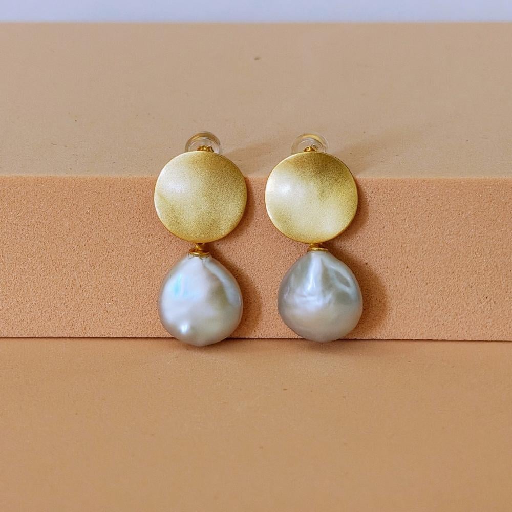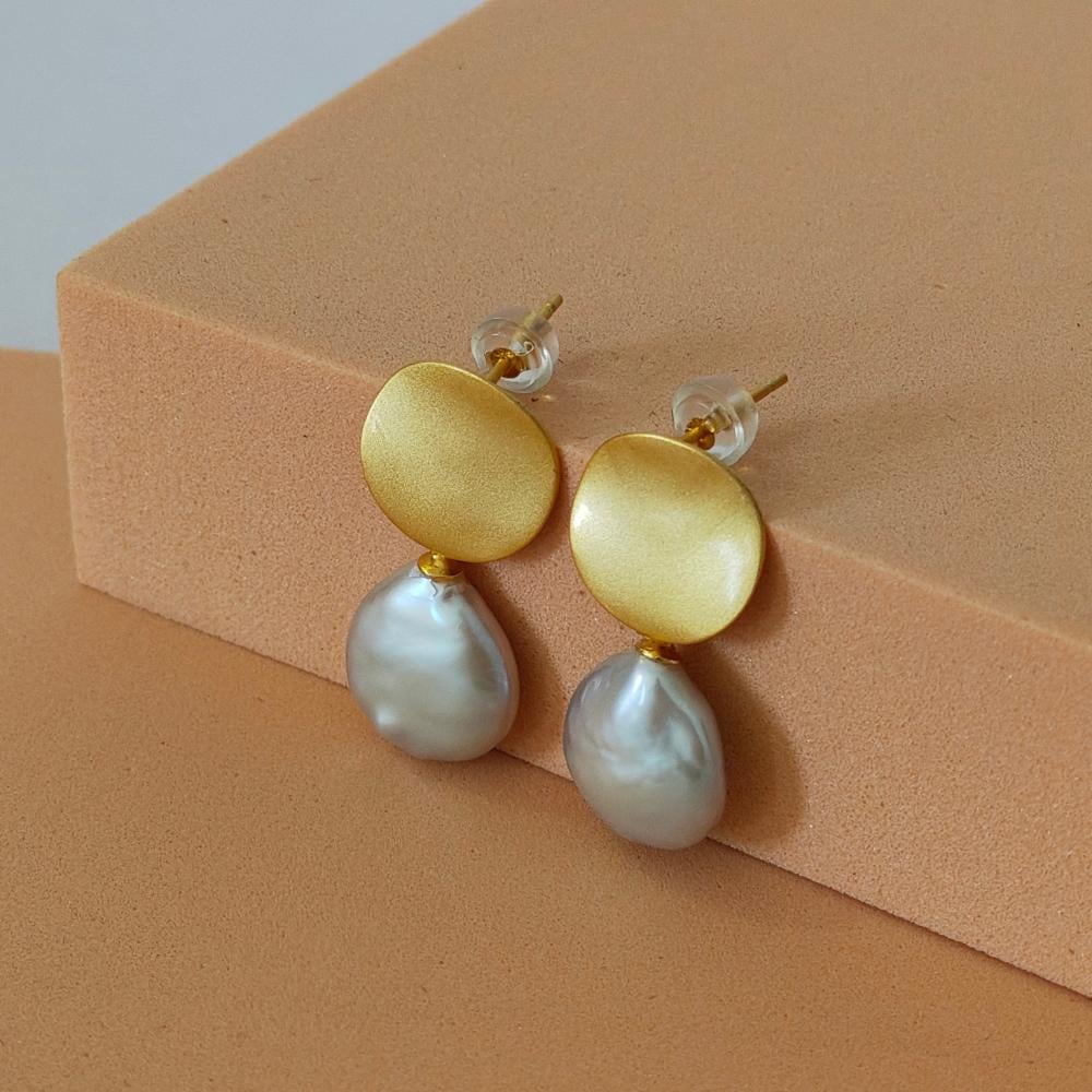 حلق من الفضة ولآلئ المياه العذبة الطبيعية بلون ذهبي وأبيض.حلق فضة S925 .أحجار لؤلؤ طبيعي بشكل الباروك الطبيعي.حجم اللؤلؤ 12 - 13 ملم.طول الحلق 2.6 سم.