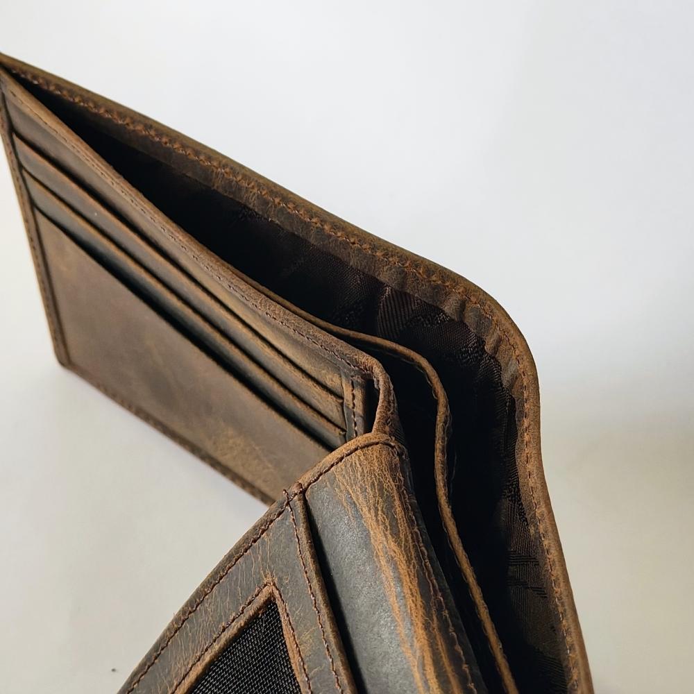 محفظة جلد طبيعي كلاسيكية - بني داكن